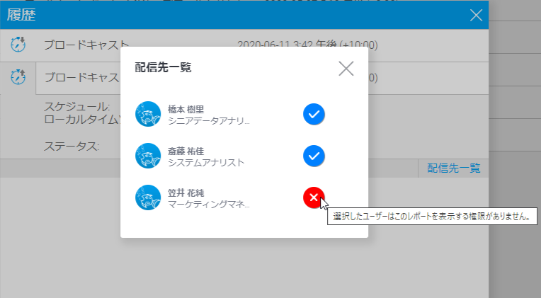 この分野でのもうひとつの改善として、以前はスケジュール管理に最新の実行のみが表示されていましたが、ブロードキャストスケジュールの実行履歴を表示できるようになりました。今回のリリースでは、各ブロードキャスト実行が新しく履歴タブに表示されるだけでなく、各実行がトラッキングされ、配信先一覧も表示されます。これには、コンテンツが正常に配信されたユーザーと、失敗したユーザーが表示され、配信に失敗したユーザーは、そのエラー内容も確認できます。