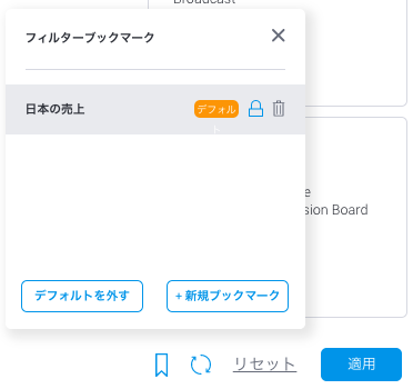 他の改善点として、デフォルトブックマークを導入しました。ダッシュボード使用者は、パーソナライズされたデフォルトフィルターブックマークを保存できるようになり、ダッシュボードを最初にロードしたときや、ダッシュボードフィルターがリセットされたときに、自動的に適用することができます。これらのデフォルトブックマークは、公開と非公開の両方で、他のユーザーやグループと共有できます。