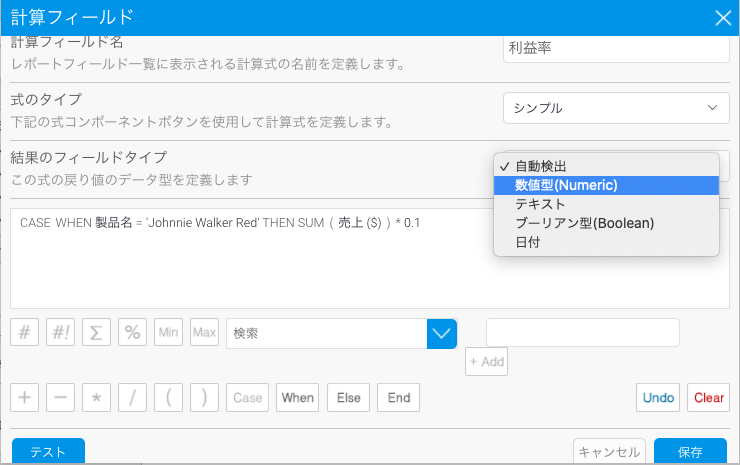 計算フィールドでは、結果のフィールドのデータ型(数値型(Numeric)、ブーリアン型(Boolean)、テキスト、日付)を事前に定義し、検証テストをスキップできるようになりました。これは、複雑でコストのかかる計算のために、データベースの検証時間を節約できます。