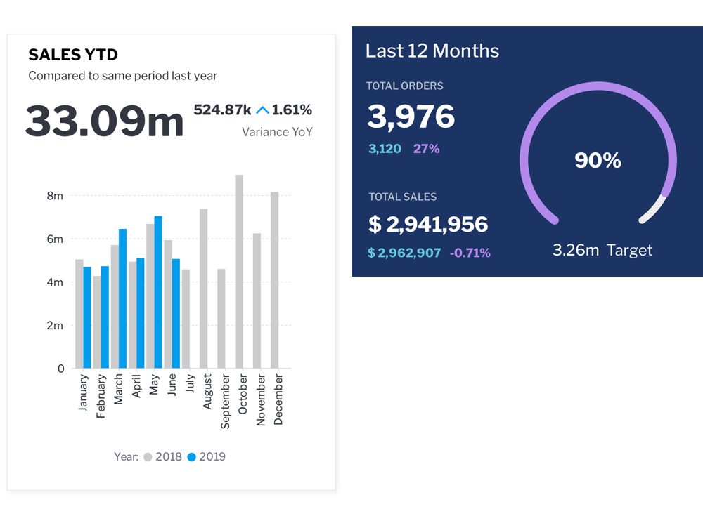 最も重要なことは、KPIダッシュボードは、すべての値に対する詳細を提供するのではなく、パフォーマンスに対する有用でハイレベルな視点のインサイトを提供することです。これは、ユーザーにすべての答えを提供するわけではありませんが、ビジネスのどの領域で詳細な、または追加の分析が必要かを判断するための促進剤として機能します。