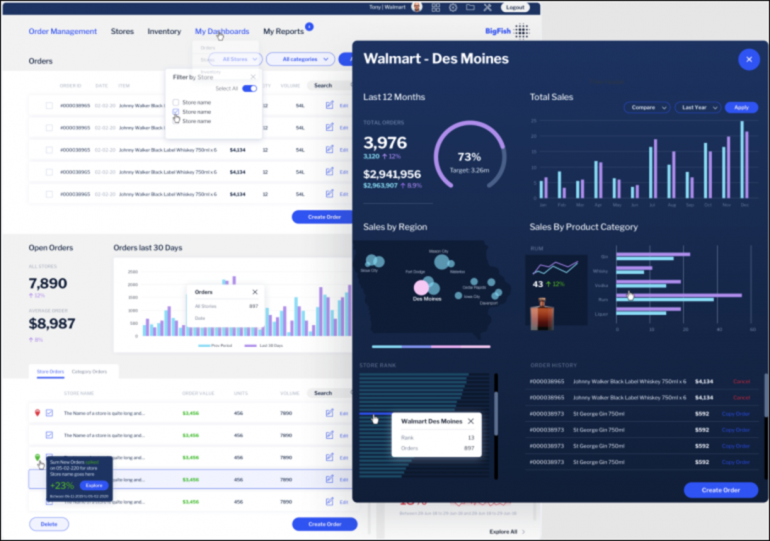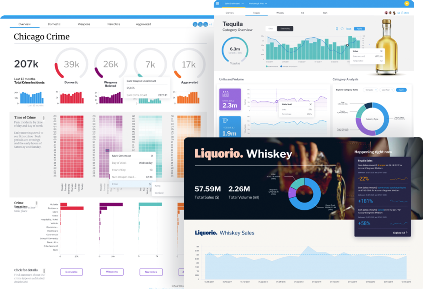 BIソリューションのデータビジュアライゼーションコンポーネントは、部門間のコラボレーションにおいてますます重要性を増しており、ビジネスクリティカルな情報 (リアルタイムの売上追跡、顧客行動分析、利益予測など) をリッチでインタラクティブなグラフやチャートでグラフィカルに表現し、重要なデータを伝達して、文脈化することで、ユーザーを強化しています。