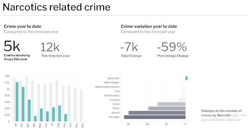 チャートやグラフの追加しすぎも、ダッシュボードのナビゲーションを困難にします。追加するチャートやグラフのタイプは少数に限定し、データを伝えるために効果的に使用されていることを確認します。