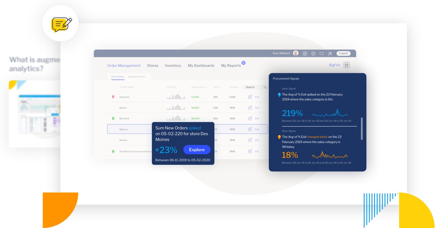 標準的なレポート作成機能では不十分な場合、Yellowfin シグナルによる自動アラートや、Yellowfin ストーリーによる文脈に富んだナラティブの共有、文脈的アナリティクスを活用したトランザクションワークフローへのアナリティクスの直接の組み込み、視覚化され、即座に生成される自動インサイトなど、より詳細なインサイトが必要なときに、最新で強力なモード2アナリティクス機能を使用することもできます。