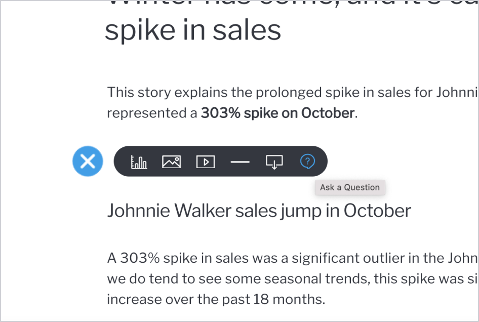 ダッシュボード、ストーリー、プレゼンテーションは、ガイド付きNLQとの統合により強化されました。