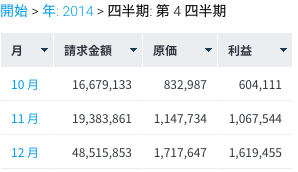 もし、「年(Year)>月(Month)>日(Date)」ような階層をドリルダウンしたいケース レポート内のリンクをクリックすると、詳細とともにレポートが更新されます。