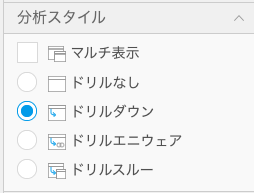 分析方法の選択は、「レポートのオプション」の「分析方法」欄にあるラジオボタンで行います。以下のように「ドリルダウン」を選択してください。