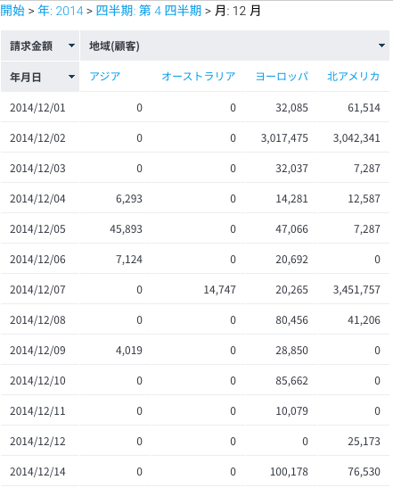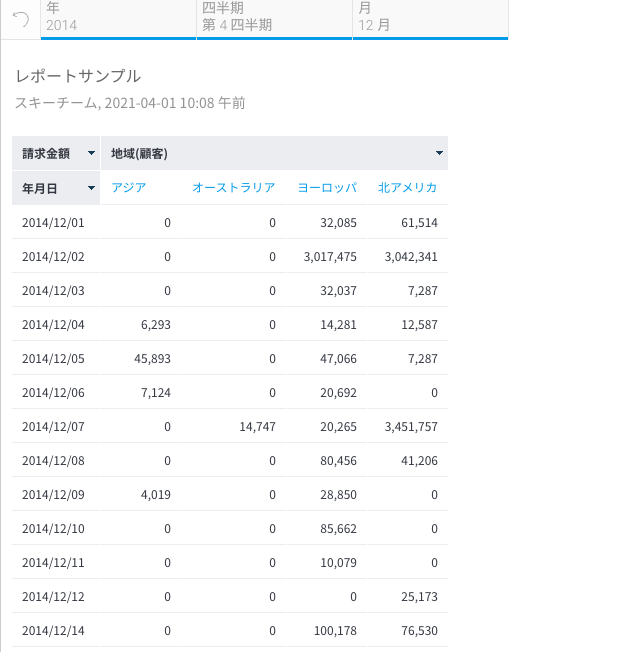 例えば、地域別売上レポートを閲覧しているとします。