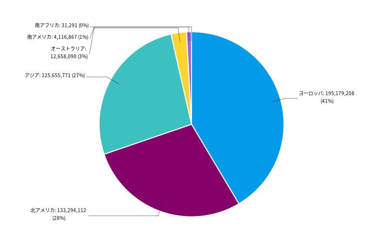 特定の地域の売上が突出している原因を確認するために、対象の地域をクリックしてデータを掘り下げることで、その地域内の国々のパフォーマンスを確認することができます。