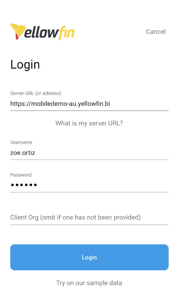 Yellowfin モバイルアプリでは、単一のクライアント組織のメンバーであるユーザーは、モバイルアプリに初めてログインする際に、クライアント組織IDを入力する必要がなくなりました。