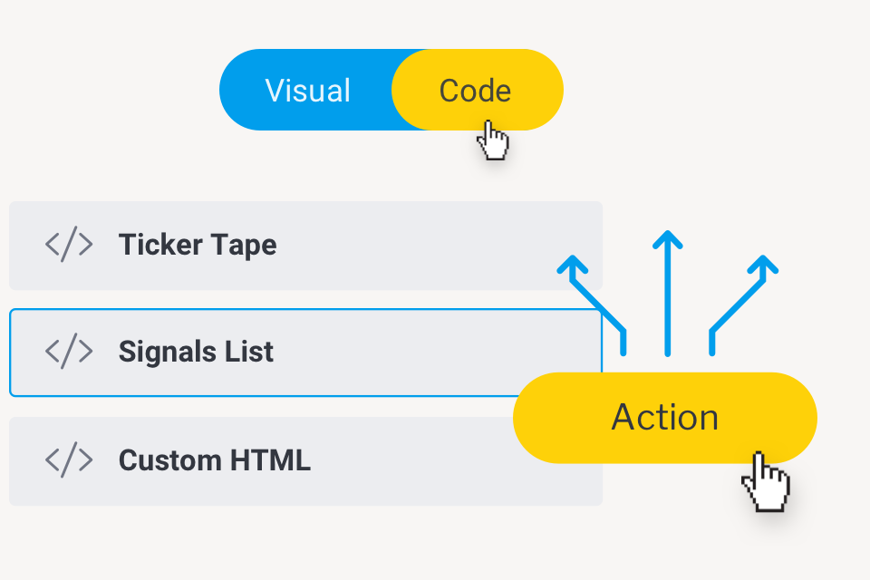 コードウィジェットを利用して、ダッシュボードの対話性や操作性をカスタマイズすることができます。さらに便利なことに、あなたの作成した優れたコードモードインテグレーションは、保存することができるので、他のユーザーがダッシュボード構築に再利用することができます。