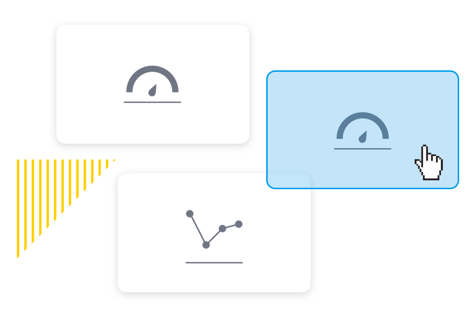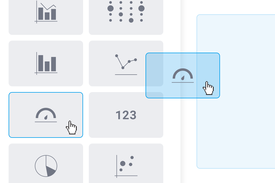 ペンや紙は必要ありません。ブループリントを使用してアナリストやデザイナー、開発者と協力して完璧なダッシュボードを素早く作成することができます。自動設定プロパティを使用して、ダッシュボード上でレポートやグラフを直接作成することで、ダッシュボードのデザインプロセスが短縮されるため、全体的な作業量を削減します。