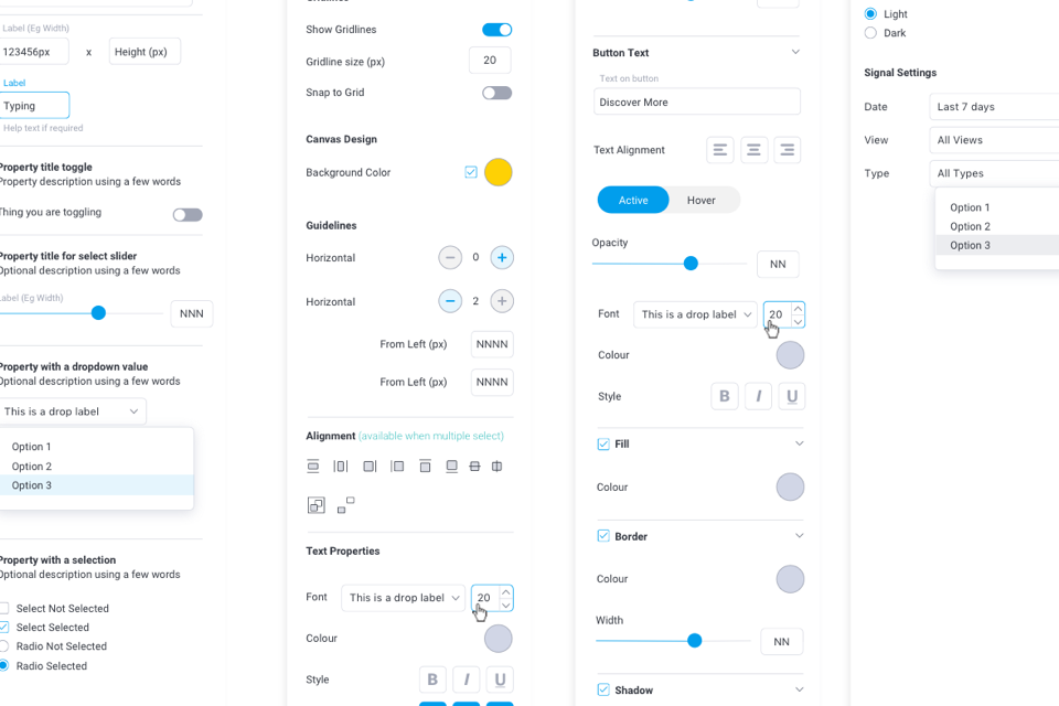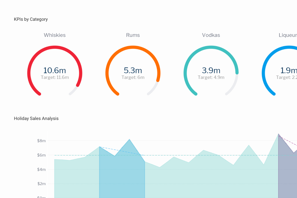 驚くほど魅力的なフリーレイアウトのキャンバスを使用して、クリエイティブなインフォグラフィックや、ピクセルパーフェクトで実用的なダッシュボードをデザインすることができます。