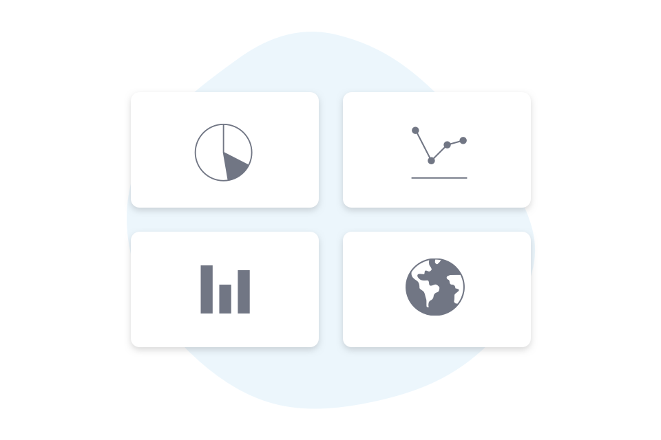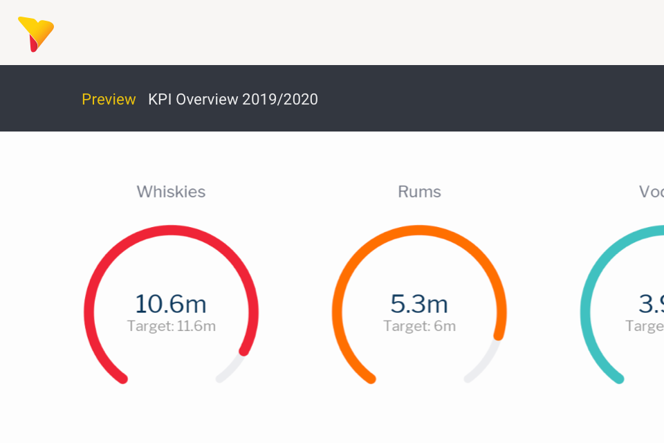 頭に思い描けるものは、何でも構築できます。新しいダッシュボードビルダーの機能である、柔軟でフリーレイアウトのキャンバスを使用すると、クリエイティブかつ、企業ブランドのインフォグラフィックを用いた、実用的なダッシュボードを構築することができます。