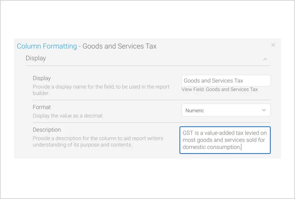 計算フィールドに新しいカラムフォーマット設定が追加され、レポート作成者を支援するためにフィールドの目的と内容を明確に記述することができるようになりました。