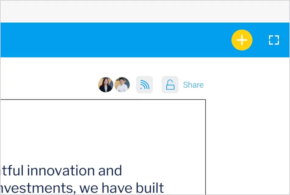新しいツールバーが公開されたプレゼンテーションに追加され、ユーザーアクセスを設定してプレゼンテーションを共有できるようにするなど、プレゼンテーションビューアを表示します。