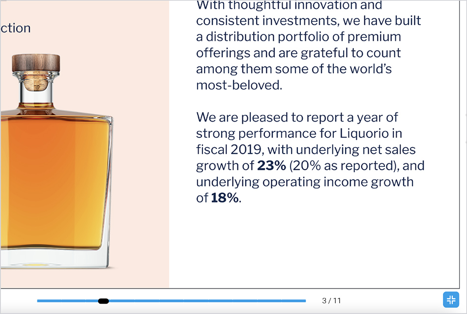 プレゼンテーションのフルスクリーンモードでは、ユーザーインターフェースに閉じるボタンが追加され、既存のキーボードショートカットを補完します。