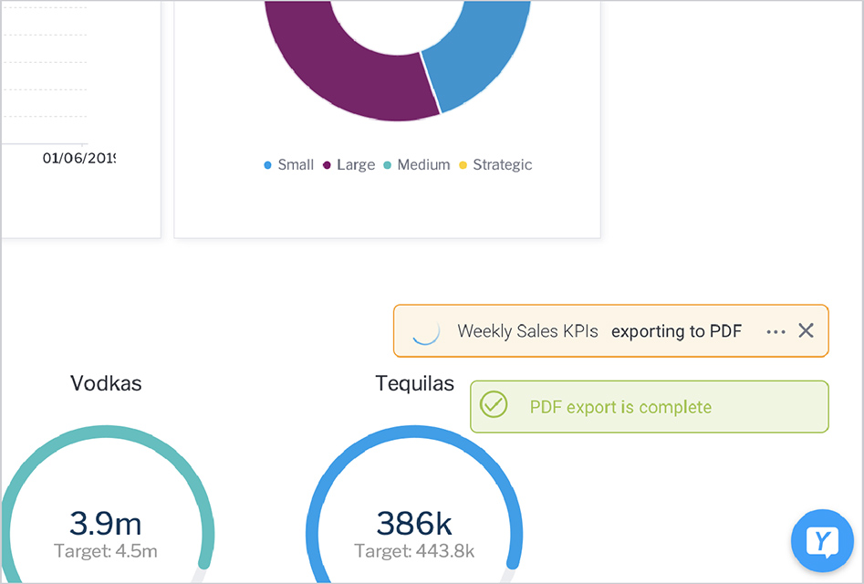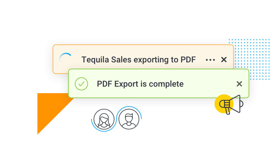 新しいスタック可能なプッシュスタイル通知が導入され、バックグラウンドでPDFエクスポートが実行されている間に他の領域に移動しても最新情報を把握できます。改善点として、スマート通知に文脈的アクションが付随するようになりました。