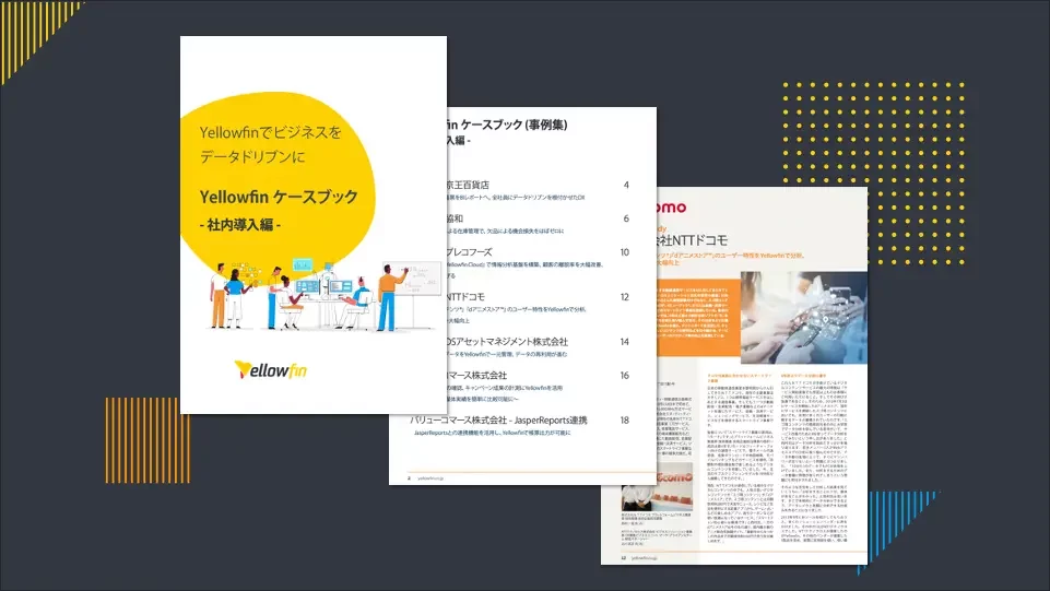 Yellowfin ケースブック(事例集)は、Yellowfinユーザーの導入経緯から成果までを詳細に解説しています。社内導入編では、Yellowfinを自社のデータ分析・活用に利用している事例をまとめました。
