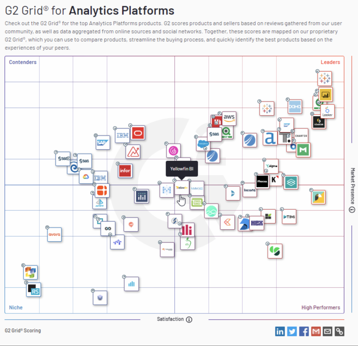G2 レポート: Yellowfin対トップBIおよびアナリティクスプラットフォームの比較