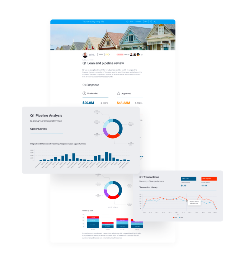 ストーリー – Yellowfin ストーリーは、豊富な知識を持つビジネスユーザーが数字の背後にある完全な文脈を提供することを可能にします。pudding.coolやmedium.comといった人気のストーリーテリングサイトに倣い、レポートやビジュアライゼーションをテキストと一緒に組み込み、数字の背後にあるストーリーを提供することができます。ストーリーは、イメージやビデオだけでなく、Power BIやTableauなど他のBIツールのレポートとも組み合わせることができます。ストーリーは、データの塊や複雑なビジュアライゼーションの解釈が困難な情報消費者に最適で、専門家による段階的な説明を受けることができます。
