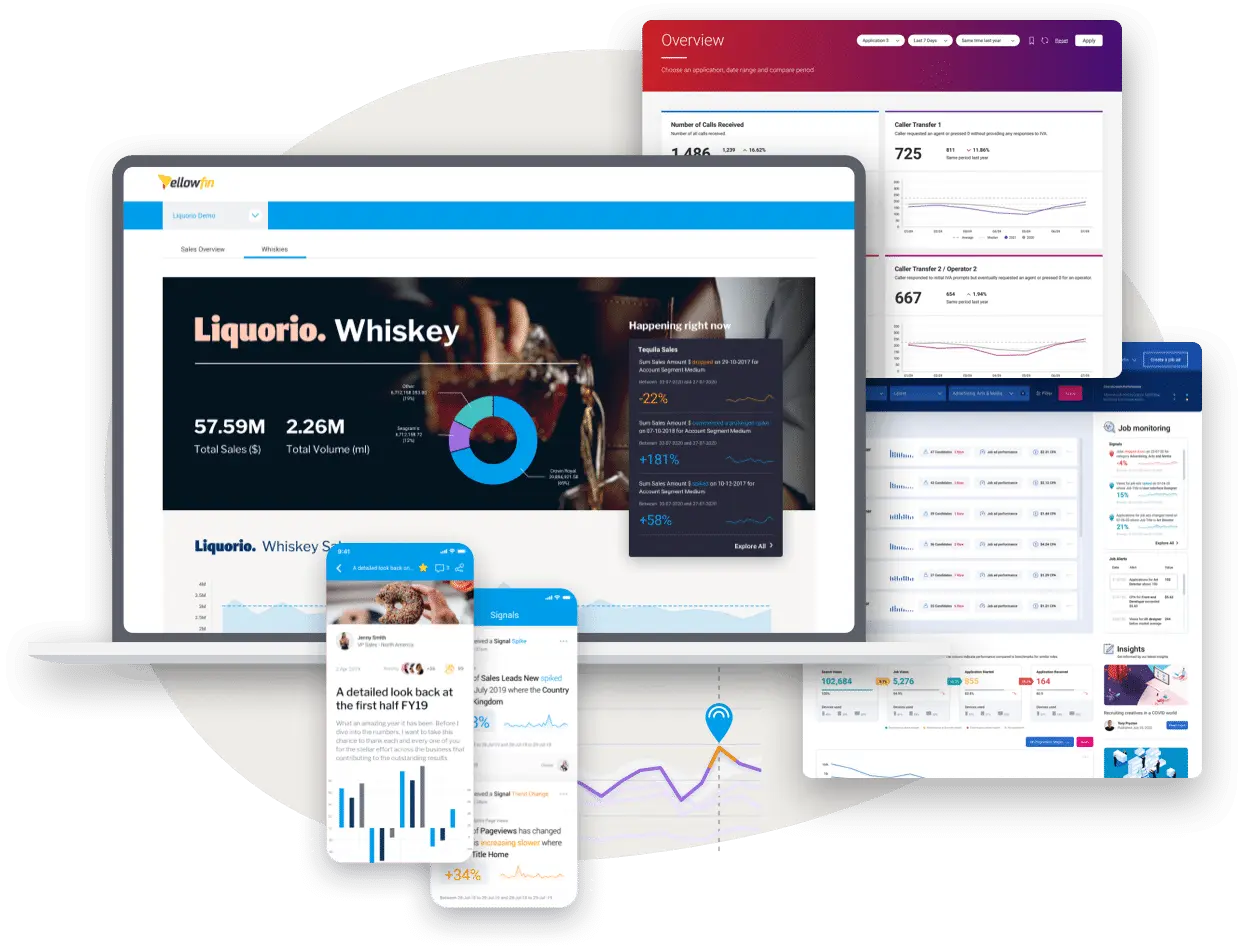 Yellowfinの中核は、働く業界や役割に関係なく、情報を必要とする人々にこれを提供することです。オンデマンドで情報にアクセスすることも、定期的に情報を提供することも可能です。表形式、グラフ形式、忠実度の高いダッシュボード、長文形式のデータストーリー、または外出先から携帯端末でインサイトを得るなど、データ利用に柔軟性を提供します。Yellowfinは、様々なニーズに対応し、拡張できるように設計されています。Yellowfinは、様々なアプリケーションにホワイトラベル化して組み込むことができます。Yellowfinは、毎日何百万人もの顧客の情報ニーズに対応していますが、顧客は自分たちがアナリティクスツールとしてYellowfinを使用していることさえ気づいていません。