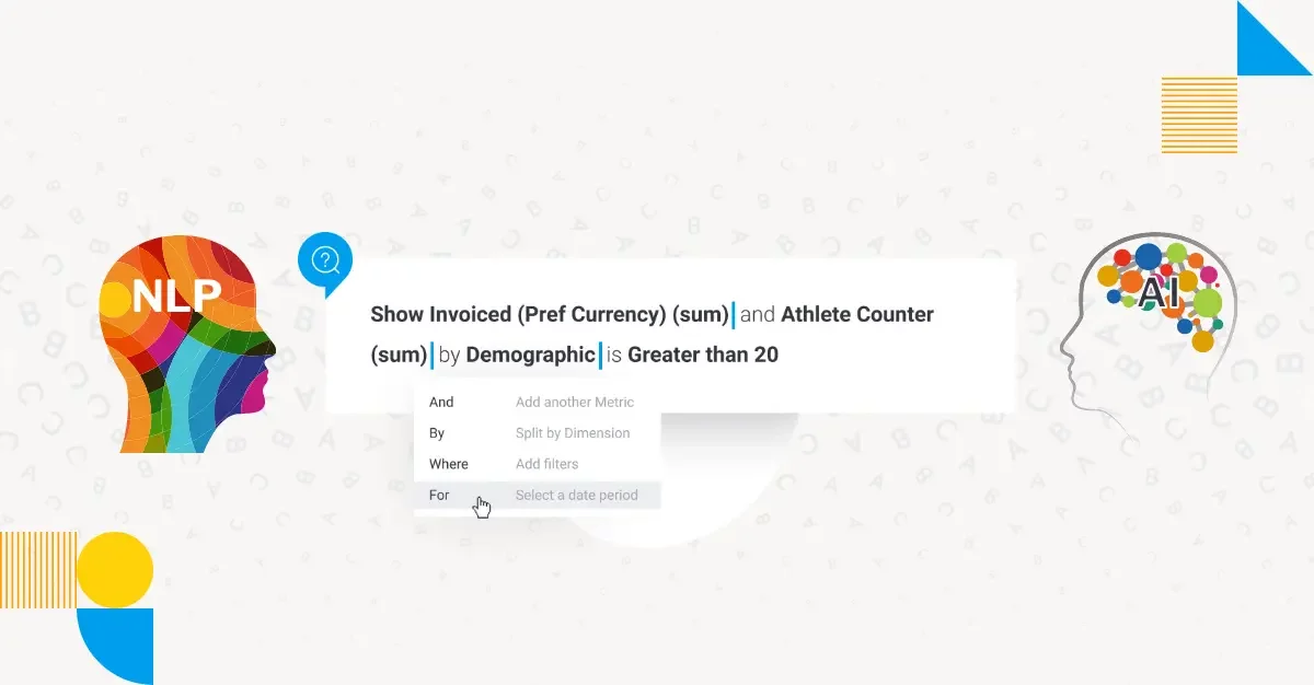 例えば、NLQは、ユーザーがデータに対して行う自然言語による質問を構造化されたクエリーに変換し、より多くの人々がデータにアクセスできるようにすることに重点を置いています。Yellowfin BIは、専用機能であるガイド付きNLQでNLQ技術を活用し、BIユーザーが (特定の専門用語を知る必要なく) 日常的な言語を使用してデータに関する質問を構造化できるようにしています。