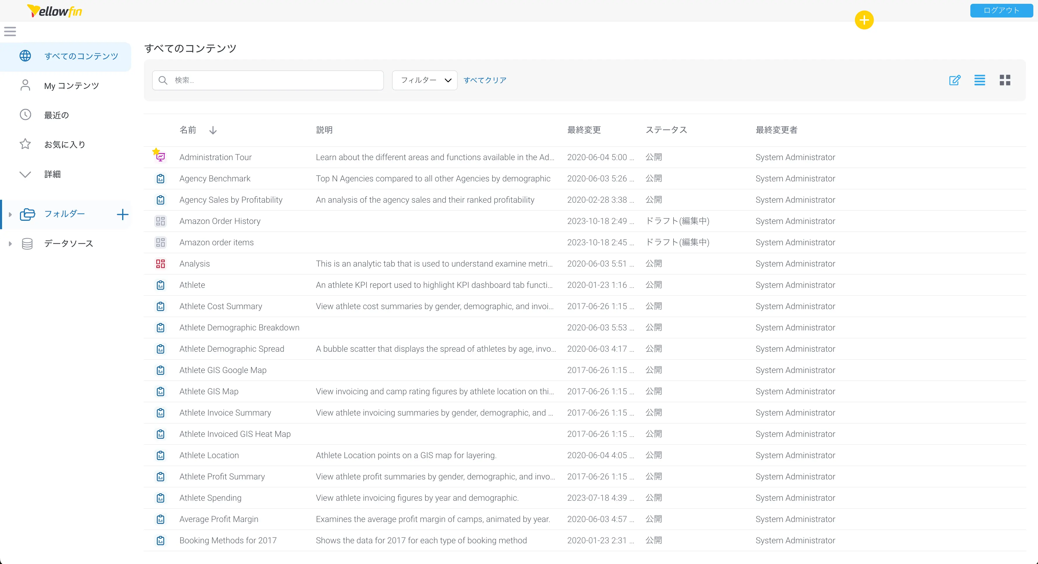 Yellowfin 閲覧ページのユーザーインターフェースが刷新され、よりスッキリとした見やすい外観になりました。この新しいデザインは、レポート、ダッシュボード、プレゼンテーションなどのナビゲーションを簡単にすることで、閲覧体験を向上させることを目的としています。これにより、Yellowfinを初めて使用するユーザーにとっても、熟練したユーザーにとっても使いやすく効率的になりました。