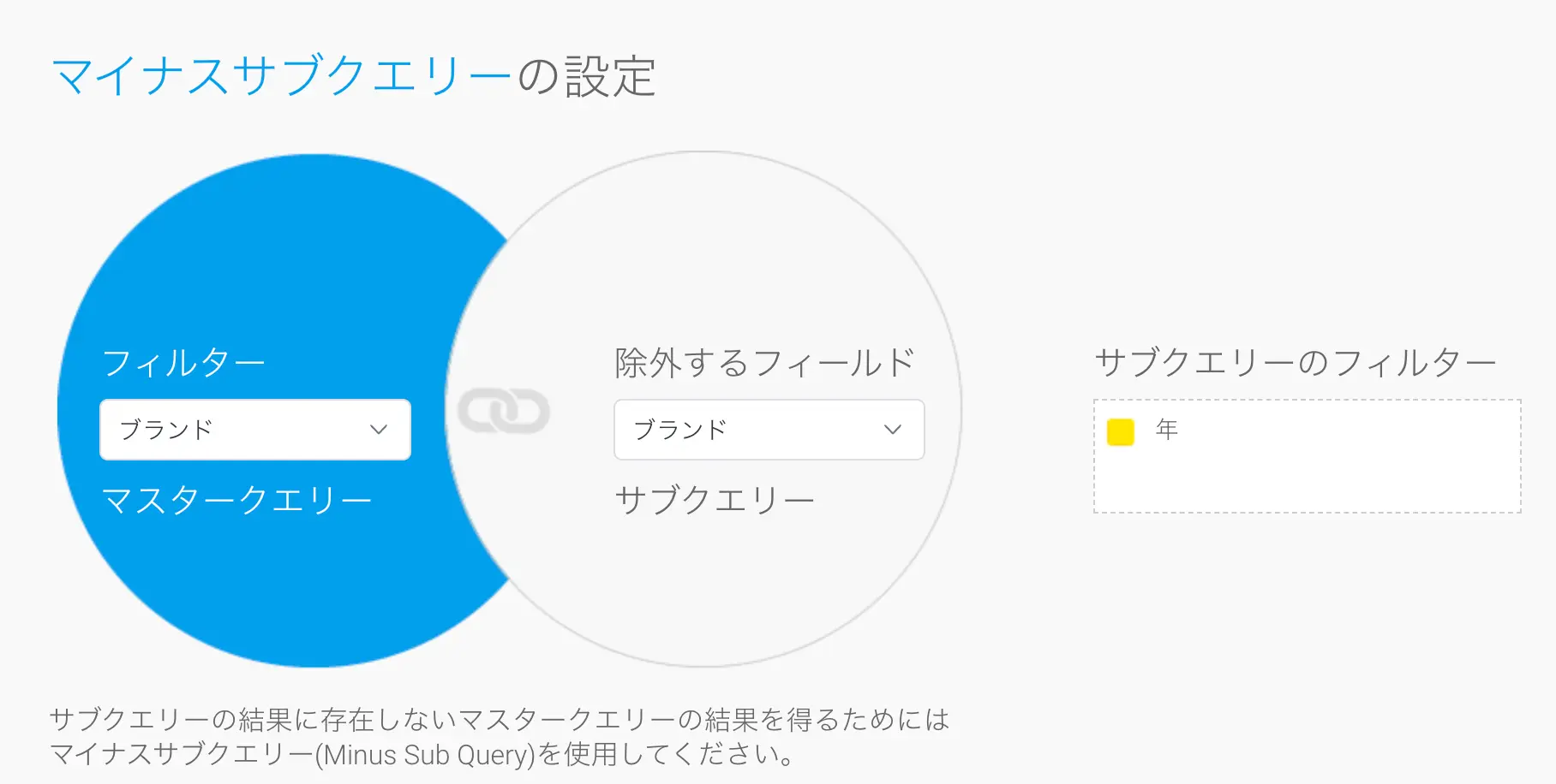 高度なサブクエリーを使用したデータセット間のデータ結合