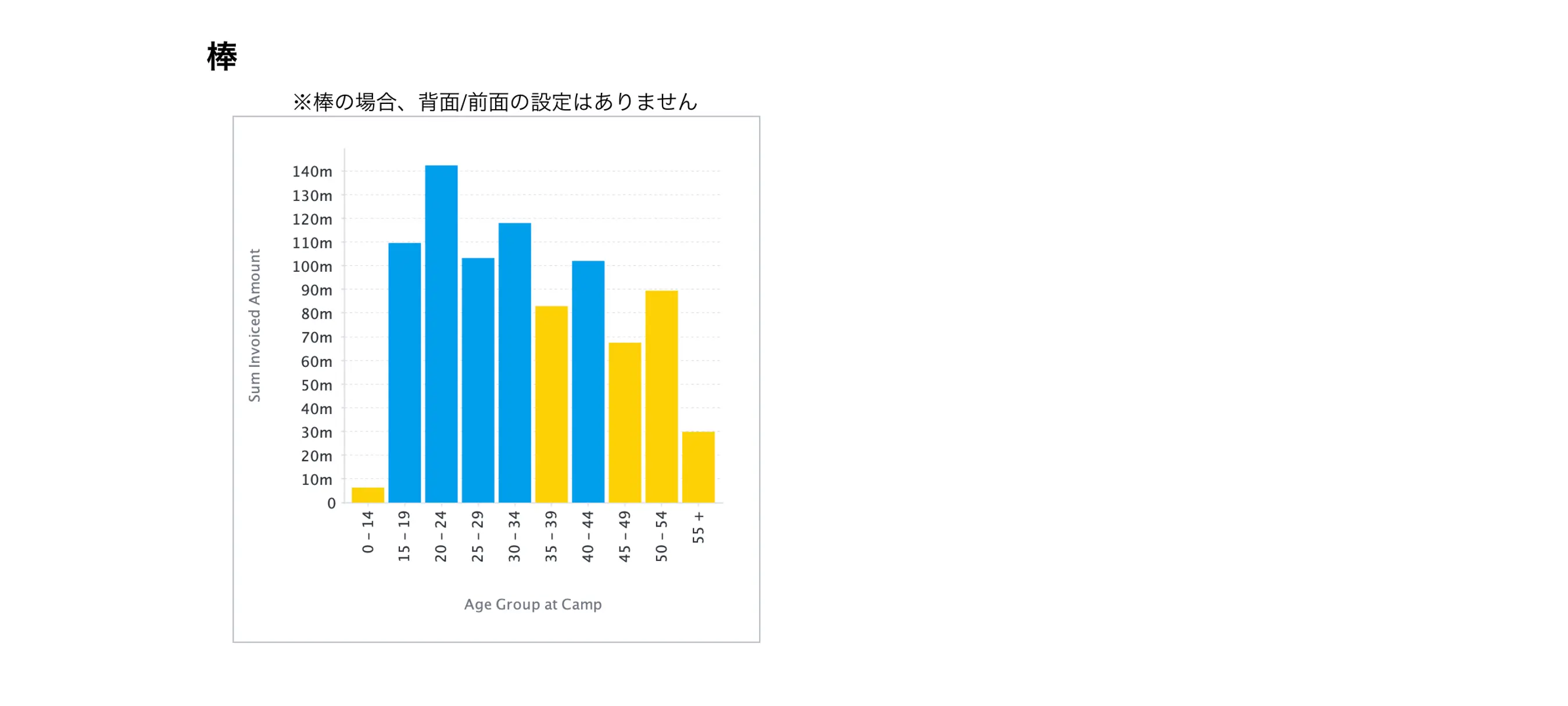 『棒』の場合は、条件付き書式のルールがグラフの棒に適用されます。棒自体の色が変わるため、位置の設定(背景/前面)はありません。
