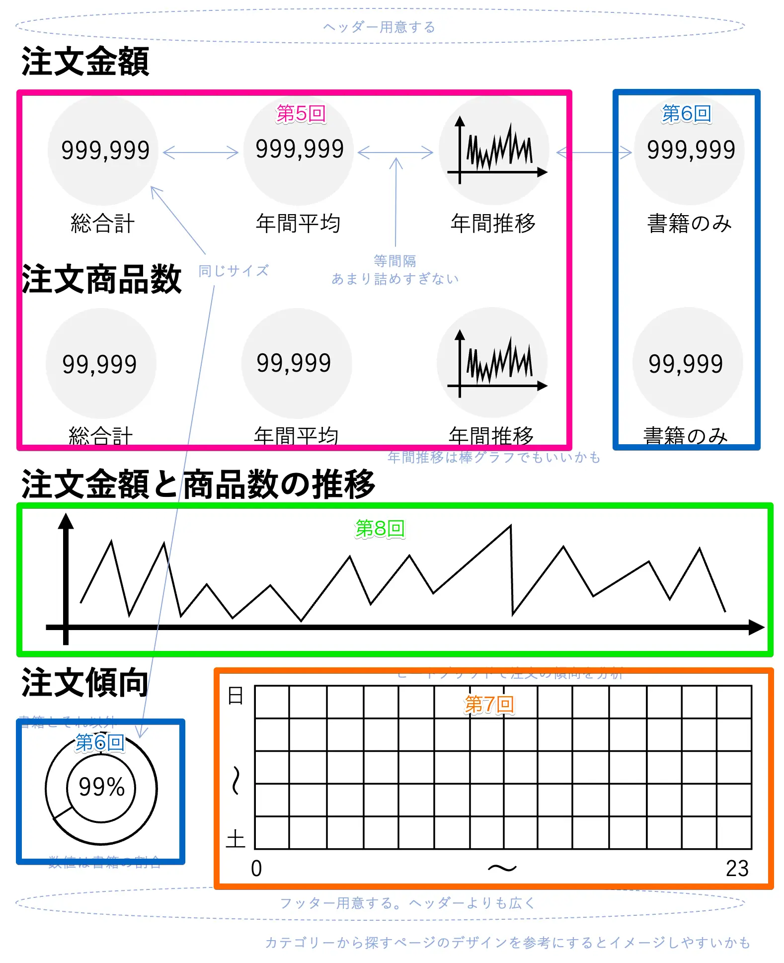 完成したダッシュボードを改めて見てみると、少し物寂しい、もう少し装飾を付け加えたい、などの欲求が出てくるかもしれません。これ、キリがないのでダッシュボードの機能に致命的な欠陥が見つかったとかでない限りは、やめておいた方がいいと思います。見栄えの問題は第2回のラフを作成したときに予測できていたはずで、デザインの段階で解消しておくべき問題だからです。