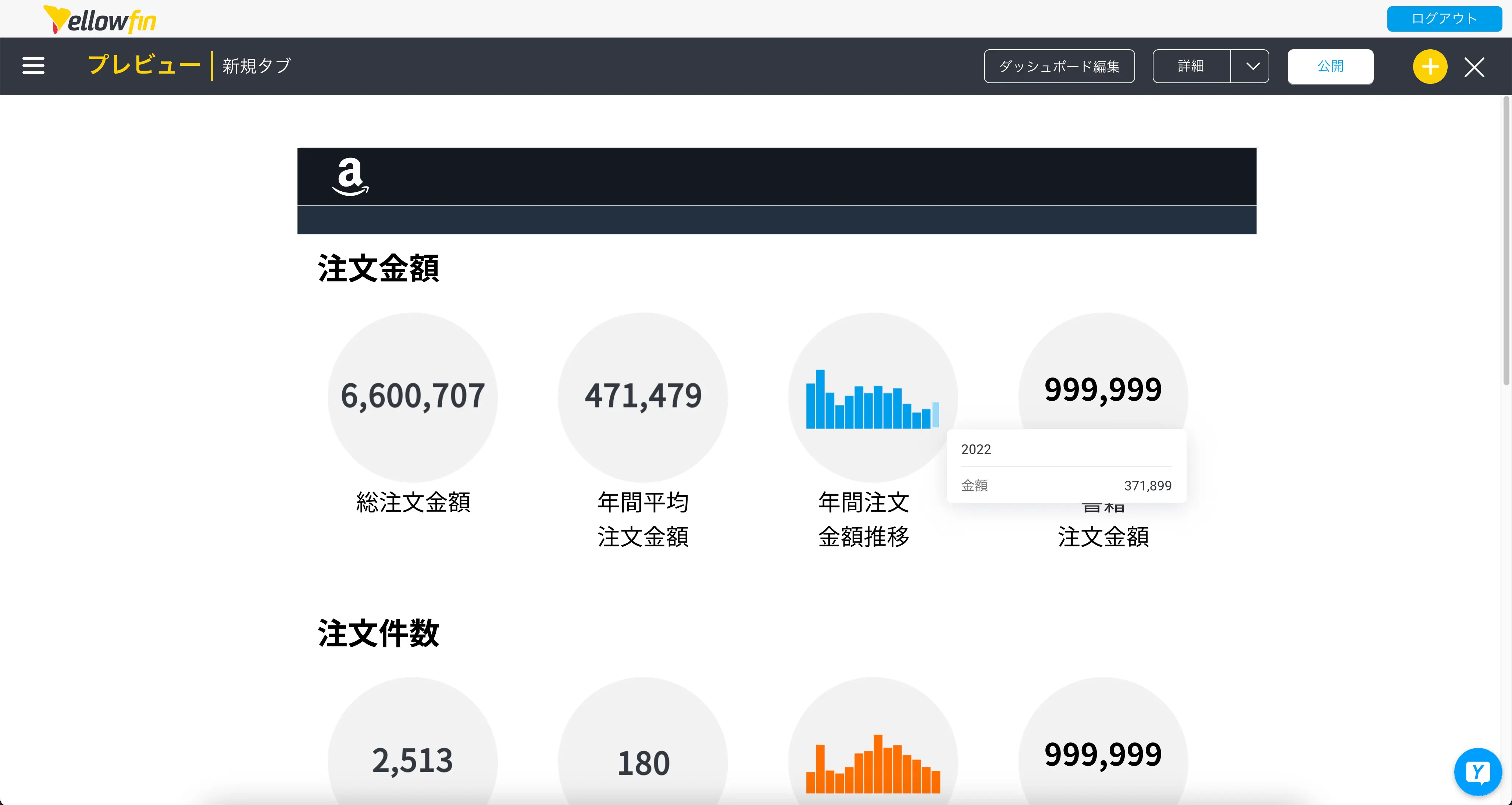 以上で、すべてのグラフが配置できたと思います。一度プレビューモードで全体を確認して、問題がないようであれば、公開ボタンをクリックしてダッシュボードを保存します。