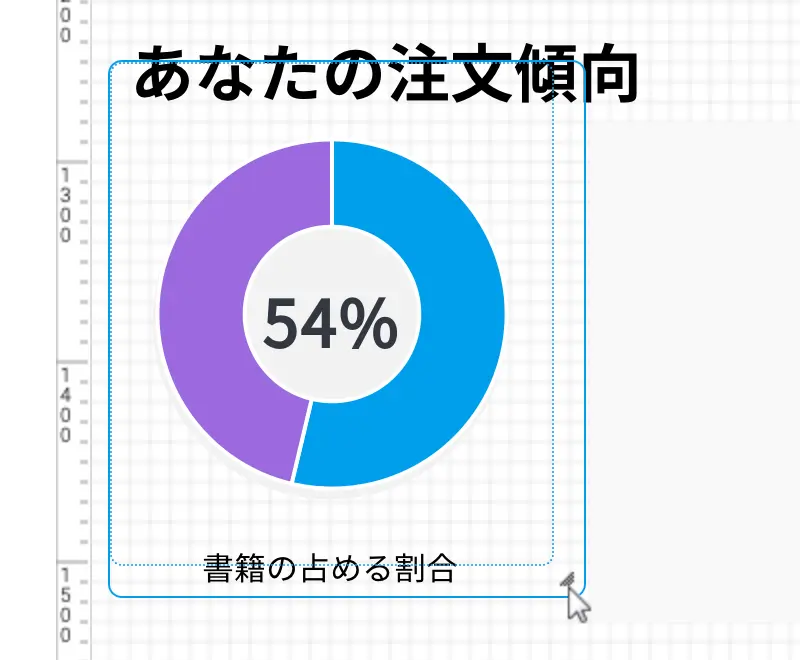 割合を示す数値グラフは、リンググラフよりも前面に表示して、リンググラフの輪の内側に収まるサイズにすることをお勧めします。これは、グラフにマウスカーソルをのせたときに、背面に表示されているグラフのツールチップが表示されなくなってしまうためです。リンググラフを前面にしてしまうと、今度は数値グラフのツールチップが表示されなくなってしまうので、数値グラフを前面に、サイズを輪の内側に収めることで、どちらのグラフのツールチップも表示できるようになります。