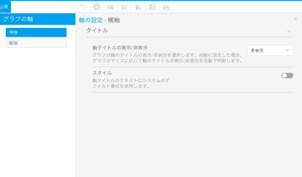 『縦軸』と『横軸』それぞれのタイトルを『非表示』に設定します。