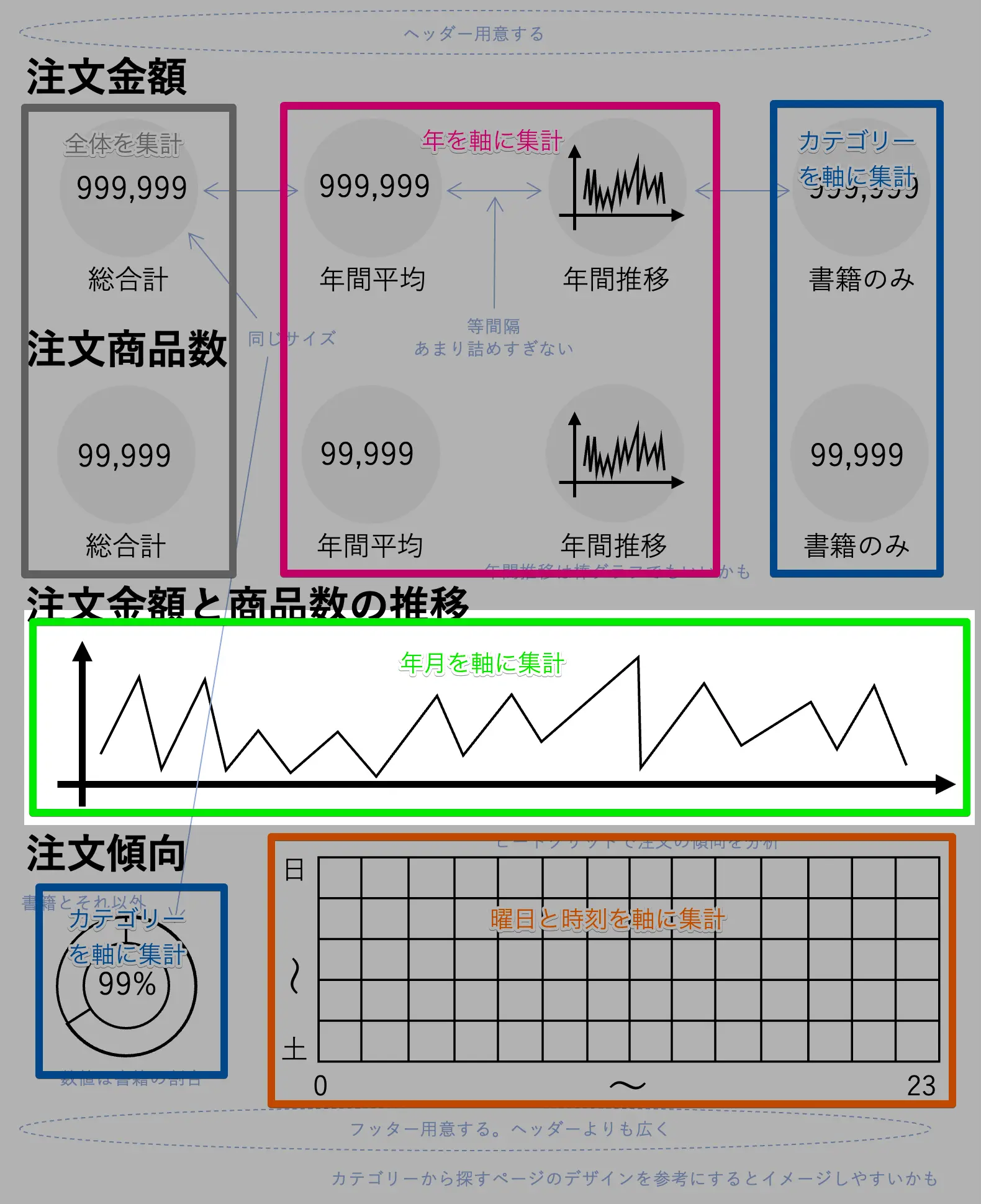 前回は、曜日と時刻を軸に集計してヒートグリッドを作成しました。グラフの軸を並べかえることによって、日曜〜土曜、0時〜23時で並ぶ見やすいグラフを作成することができたと思います。