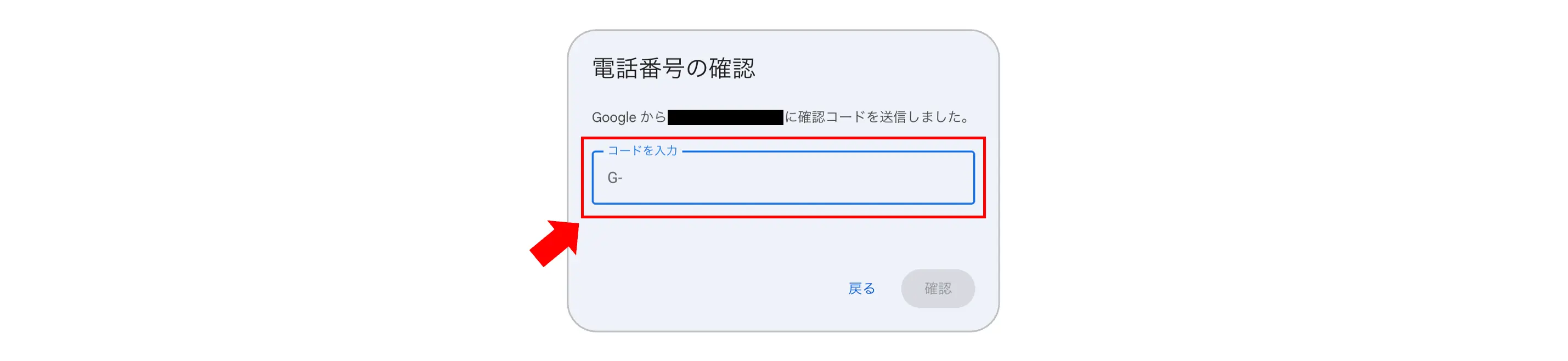 SMSで確認コードが送られてくるので、受け取った確認コードを入力し、確認ボタンをクリックします。