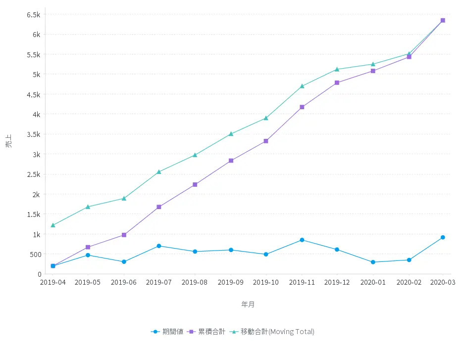 - 成長:移動合計が右肩上がりの傾向を示します。事業や企業が成長期であることを示します。