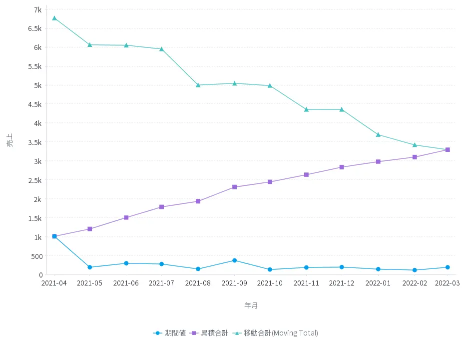 - 横ばい:移動合計が水平に近い傾向を示します。事業が安定期に入ったことを示します。