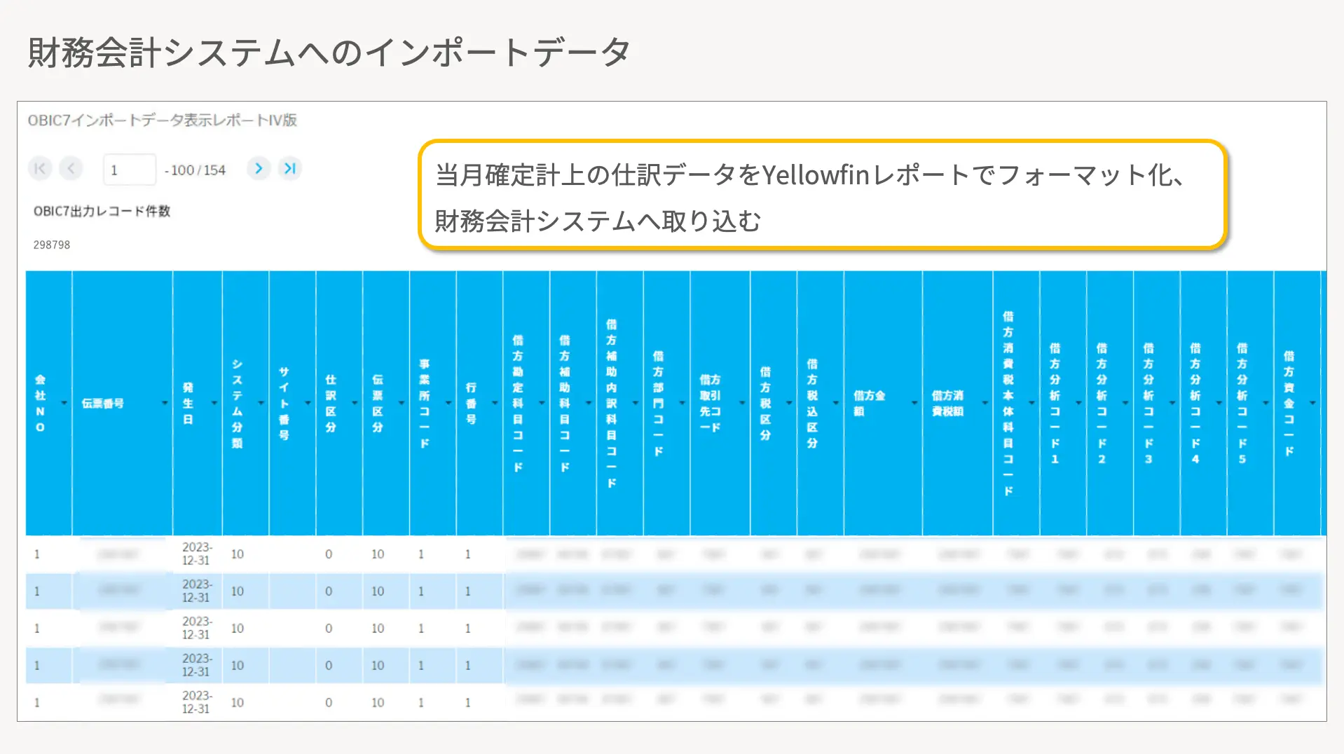 財務会計システムへのインポートデータ(Yellowfinレポート)