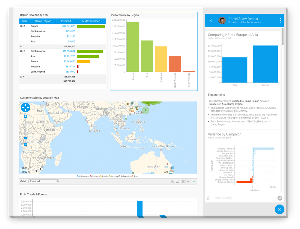Yellowfinは、エンタープライズ全体を通して、インスタントインサイトとのコラボレーションを可能にします。アクティビティストリームでは、分析を実行したレポートを強調することで、視覚的に参照しやすくすることができます。