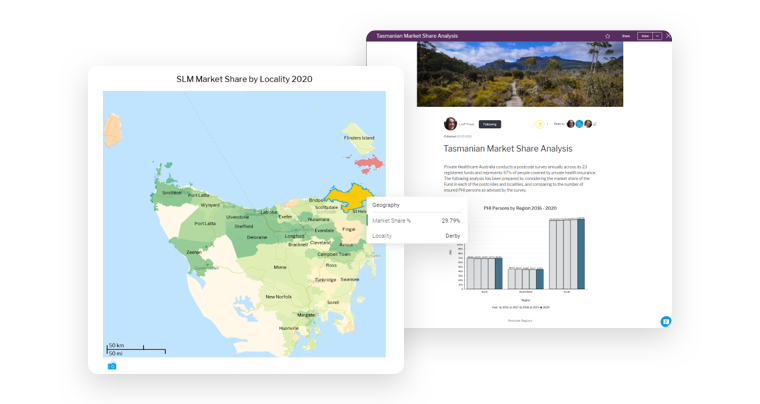 さらに、多くのスタッフは、業界のコンプライアンス団体であるオーストラリアのプルデンシャル規制機関(APRA)やPrivate Health Australia(PHA)が公開しているデータセットを使って、他の医療ファンドとのベンチマークを行うなど、いくつかのアドホックのレポートもありました。これらのレポートは、エクセルやワード文書で配布されていたため、グラフやデータのインタラクティブ性に欠け、効果的かつタイムリーな報告書の配布を行う上で同様の課題がありました。