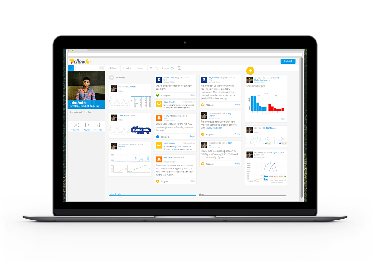 Yellowfin's awards winning collaboration gives you the ability to collaborate with all your key stakeholders in real time. Have the conversation where your data lives. With Yellowfin’s task management, common BI tasks are controlled within your BI platform. Never wait for unproductive emails to get report requests fulfilled and be alerted whenever a data quality issues arises.