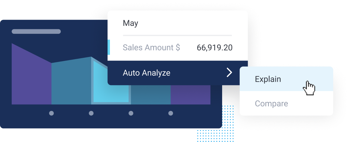 スイッチを入れるだけで、メタデータレイヤーは、Yellowfin シグナルによる自動ビジネスモニタリング、自動インサイトによる自動原因分析、Yellowfin ガイド付きNLQによるセルフサービスBIなどの高度な機能を実現します。