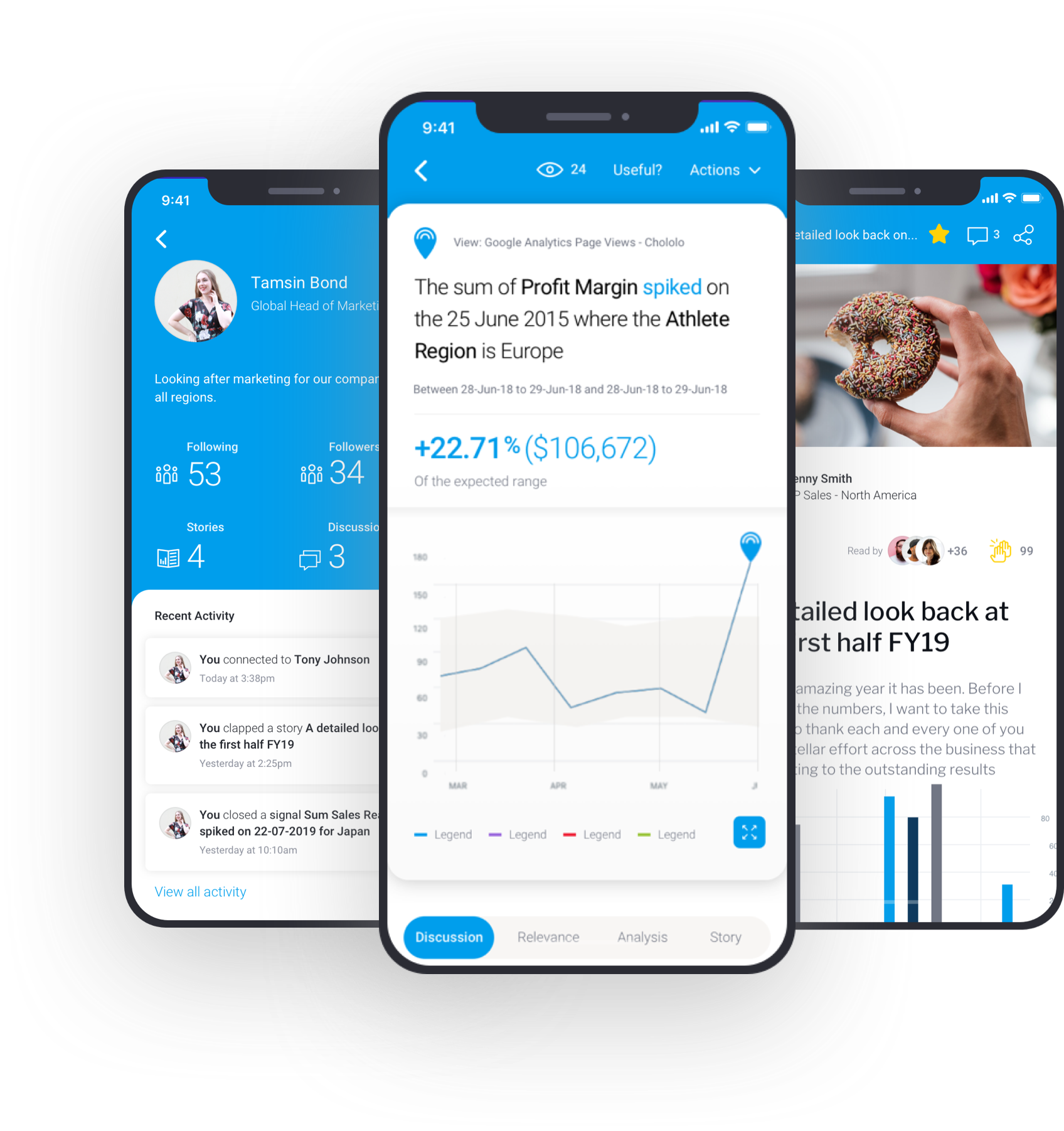 Yellowfin モバイルアプリを活用することで、いつ、なにが起きたたのかと、そして最も重要な、なぜデータに変化が起きたのかを把握することができます。使い勝手の良いさまざまなツールを備えたYellowfinは、業界をリードする自動アナリティクス、ストーリーテリング、コラボレーションを組み合わせた唯一のアナリティクススイートです。