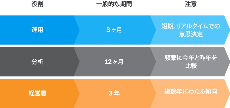 - 顧客、製品、価格、コストに関する情報を時系列で比較