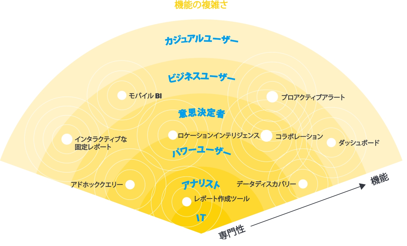 現在スタンドアローンであれ組み込みであれ、あらかじめパッケージ化されたアナリティクスアプリケーションを既存のアプリケーションに組み込み、誰もがインサイトにアクセスできる最新レベルのBIを実現するという大きなトレンドが存在します。これは、セルフサービスアナリティクスと呼ばれています。このトレンドは、ソフトウェアベンダーやエンタープライズ組織にとって、既存の製品やコアビジネスアプリケーションに優れた価値を追加するだけではなく、顧客やユーザーに並外れた価値を提供できる大きな機会でもあります。このデータドリブンな時代において、最も成功している企業は、データに素早くアクセスして深いインサイトを引き出し、その情報をビジネス全体で簡単に共有して、それに基づき迅速かつ十分な意思決定を行っています。そのため、今このトレンドを探ることが重要なのです。