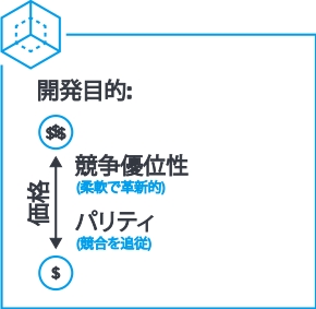 プロジェクトの遂行に必要なスキル、責任、権限を備えたクロスファンクショナルの関係者をすべて網羅するようにします。パリティソリューションを構築する場合、コアビジネスチームよりも、外部サポートがより必要になるかもしれません。競争力のあるソリューションを構築する場合は、社内で一からチームを作る必要があるでしょう。