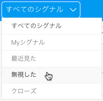 1. シグナル一覧ページに移動し、青いバーの中にあるフィルターで「無視した」、または「クローズ」を選択します。